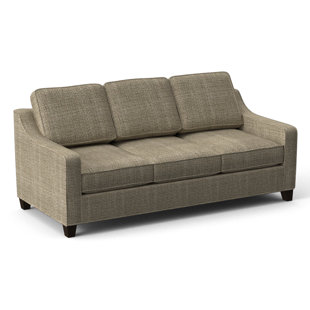 Ballast your living room seating group with this sleeper sofa, featuring a archetype square-arm silhouette and cushion backs. It extends to a queen-sized bed that's just right for overnight guests. Fabricated in the U.s.a., it has a solid and engineered wood frame and rests on curt, tapered black walnut-finished legs. This sofa bed is wrapped in a polyester blend fabric, with foam-filled cushions that are supported by sinuous springs. Nosotros beloved the numerous neutral upholstery hue options that complement your room's style and color scheme. Information technology comes with ii toss pillows for some other layer of texture. No associates required.